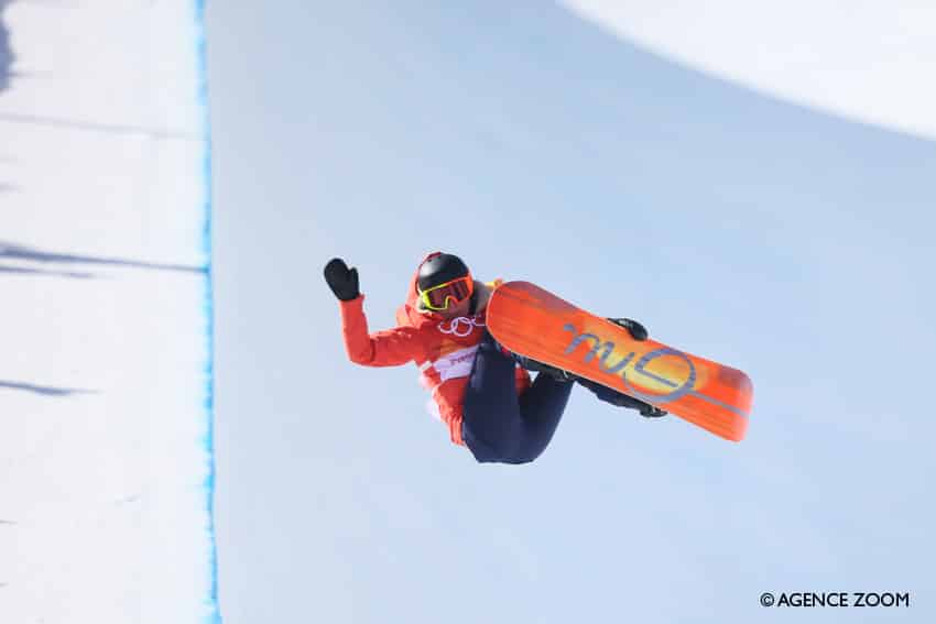 En soi, je pense que si on m’avait dit l’année dernière que j’allais faire 9e aux JO, j’aurais été super contente. C’est vrai que cette année j’ai eu de bonnes performances, j’ai terminé entre 4 et 8 toute la saison. J’espérais donc beaucoup de ces JO, je m’étais préparée pour et je voulais faire quelque chose de bien voire très bien (sourire). J’étais contente de cette 9e place, car je pense que j’ai quand même bien ridé et que mon run était bon, mais j’aurais espéré faire mieux… Cela étant dit, le niveau était hyper élevé, avec la plus grosse finale que l’on ait jamais disputée. Rien que le fait de participer à une finale avec autant de filles d’un niveau aussi élevé était déjà incroyable ! Un mois après, je me rends bien compte que je ne regrette pas, je suis vraiment contente de ce que j’ai fait…