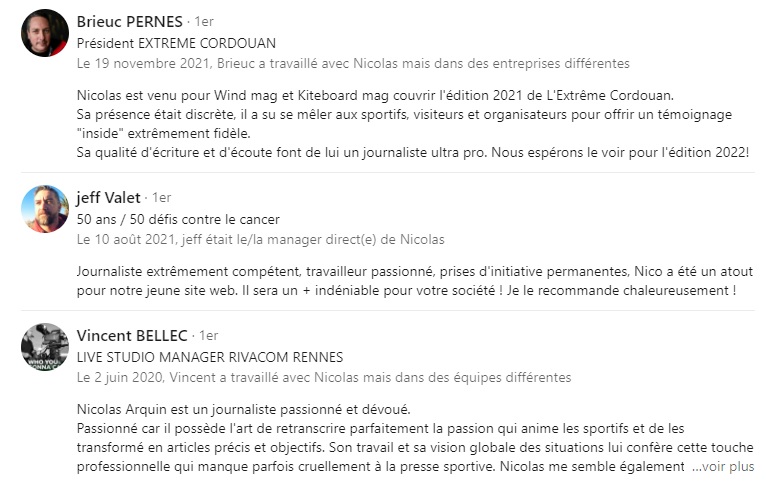 Ce vendredi 6 mai 2022, j’ai d’ailleus relu les treize recommandations LinkedIn que j’ai reçues à ce jour, et aucun doute : ça file la pêche, pour le cas où j’en manquerais! ⚡