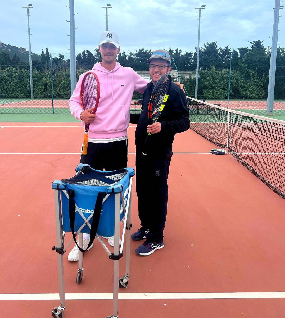 Ci-dessous : Avec Flo, mon super prof de tennis, après un coaching individuel le 27 avril 2023)