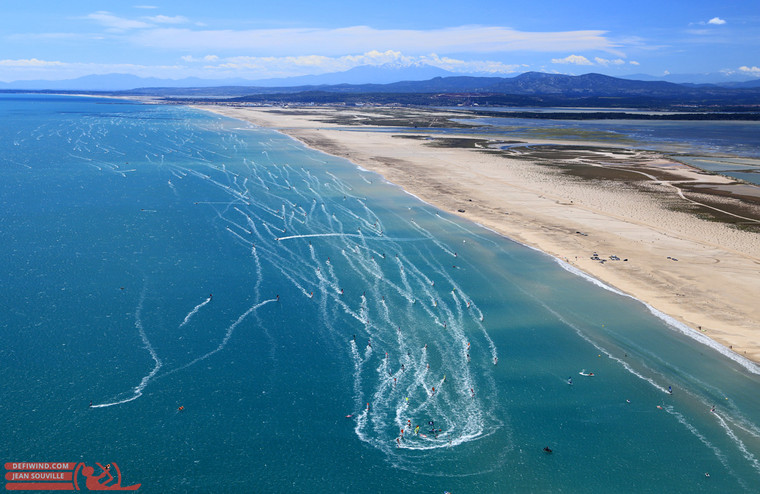 Pour information, le Défi Wind est le plus grand rassemblement de windsurfeurs au monde, avec plus de 1 300 riders pros et amateurs sur la même ligne de départ, à Gruissan (Aude, Occitanie).