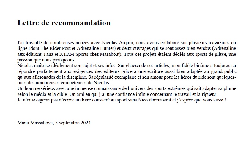 Voici la lettre de recommandation qu’il vient de me faire parvenir !