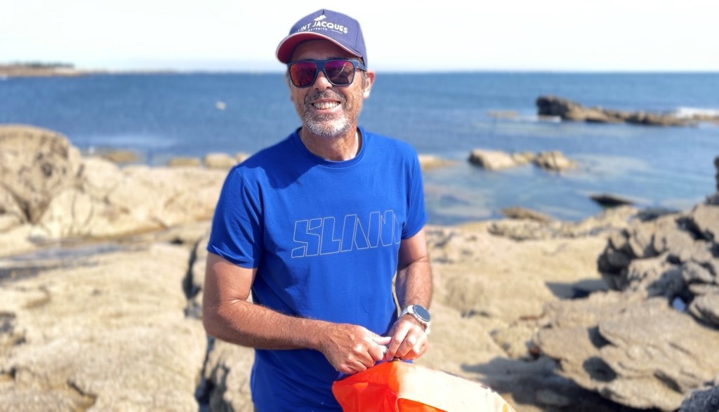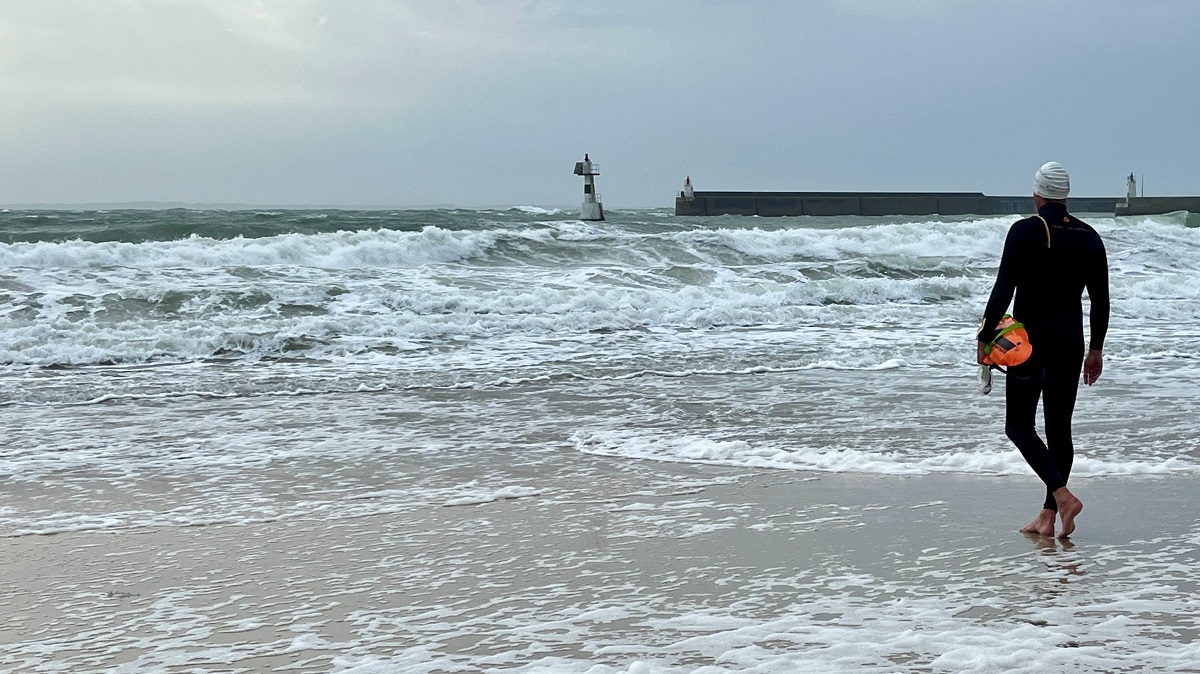 Je nage depuis tout jeune, dans le cadre de ma préparation physique. Je nageais beaucoup en piscine et en mer, avant de basculer vers la course à pied. Il y a une dizaine d’années, j’ai commencé à avoir des soucis articulaires et notamment de genou. Il a fallu que je diminue beaucoup, voire quasiment totalement, la course à pied. Je me suis donc remis à la natation, en me lançant des défis qui m’ont plu. En 2019, j’ai réalisé un solo intégral sans assistance en Croatie, en nageant d’île en île et en les traversant à pied. La mer était plate, mais il y avait un danger lié aux ferries et aux trafics maritimes, qui étaient très importants. Au fur et à mesure, j’ai eu l’envie d’ouvrir des voies, comme le tour de la Presqu’île de Quiberon en août 2020. J’ai été également le premier nageur à faire le tour du Mont Saint-Michel, puis le passage du raz de Sein en solo intégral sans assistance, le passage de la Pointe de Corbière à Jersey et d’autres encore… Les nages étaient de plus en plus à risques et difficiles, j’ai ainsi nagé dans des conditions de plus en plus fortes. Je faisais avant cela du funboard dans les vagues, du surf, de la voile, sans oublier mon travail d’entraîneur où tu es amené à sortir dans de grosses conditions… On va dire que cela fait quarante ans que je suis acculturé à cet environnement tempétueux. Au fur et à mesure de mes nages, j’ai donc naturellement poussé les limites, en me rapprochant des roches, en allant nager dans les forts courants, ou dans les tempêtes.