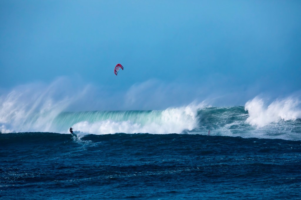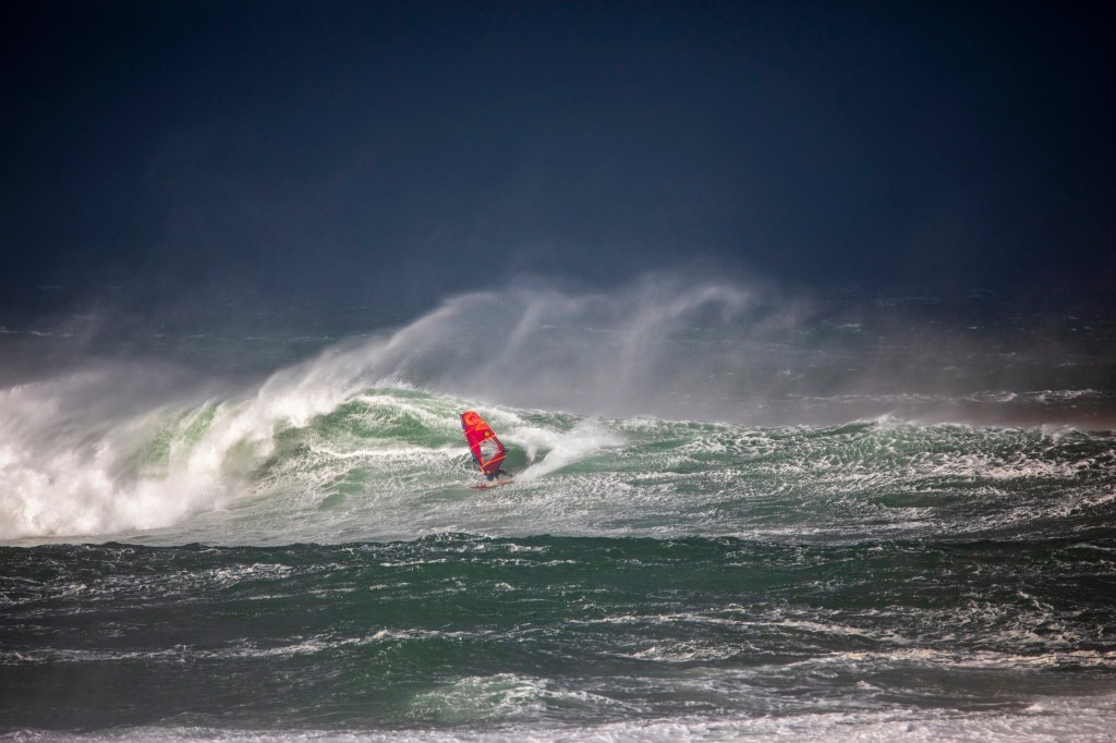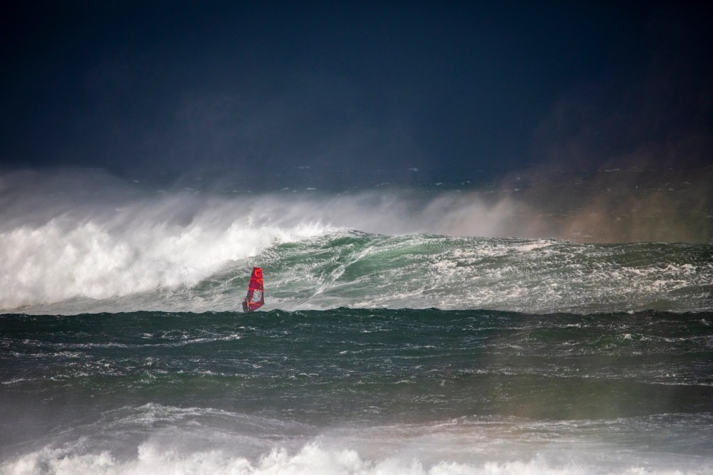 Les superstars de la planche à voile ont en effet eu droit à du gros baston, avec une énorme houle et des vents rugissants. Antoine Albeau a, à cette occasion, montré sa maîtrise dans les vagues démentes, tout comme le spécialiste Thomas Traversa. Naviguer lors du passage d’une tempete est toujours un moment particulier pour les riders, et les deux champions du monde de windsurf ont géré avec brio les conditions XXL.