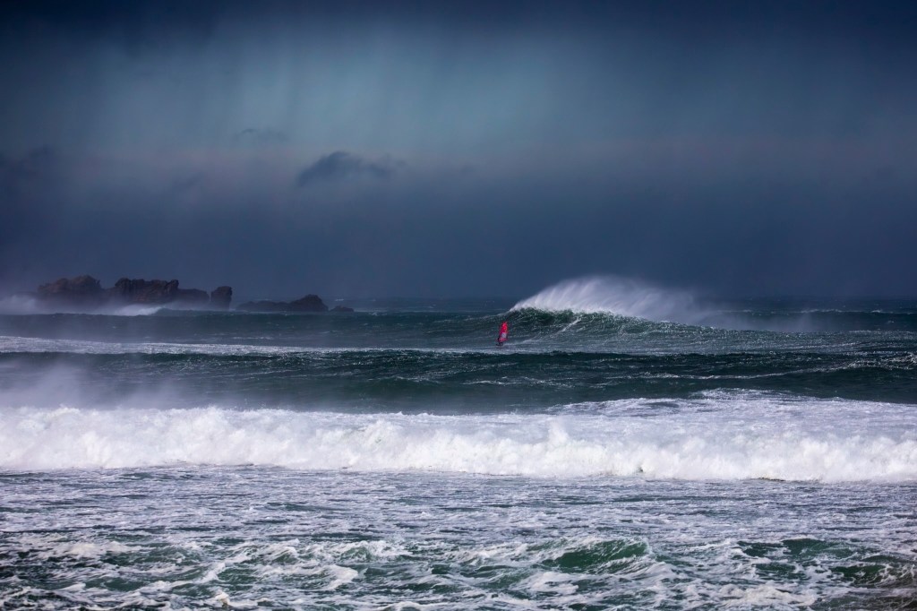 Quand deux légendes partagent une session windsurf, pour affronter la tempete Herminia, c’est show ! ll y a quelques jours, Antoine Albeau, l’homme aux 26 couronnes de champion du monde et Thomas Traversa – champion du monde PWA Wave 2014 et vainqueur du Red Bull Storm Chase la même année – se sont retrouvés en Bretagne.