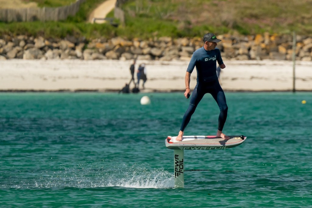 Nous nous sommes rapprochés de Christophe Defrance, le boss de PowerFoil (PWR-Foil) qui est une entreprise française. On était aux débuts du sport et nous avons donc commencé à utiliser ses prototypes. On les a emmenés en Croatie, en haute mer également puisque l’on a fait un défi pour l’association Le Cœur des Mamans. Nous avons navigué entre Portbail et Jersey en e-foil, soit 60km aller-retour. L’e-foil n’est clairement pas qu’un engin de plage…