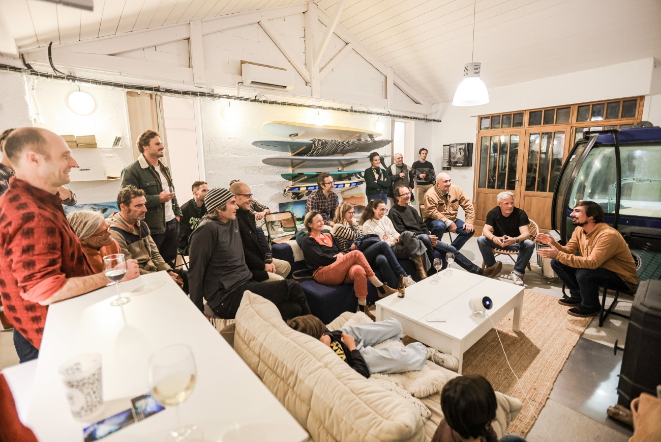 Nous avons également eu des moments de discussion avec les porteurs de projet du Surfpark de Canejan. C’est un projet très controversé, au sein du club certains sont pour les piscines à vagues et d’autres totalement contre. C’était donc intéressant d’échanger avec les porteurs de projet, et d’entendre les arguments des uns et des autres de façon bienveillante. Nous avons en outre fait intervenir la SNSM à Bayonne, et un réalisateur de documentaires à impact (Clément Pourtal).