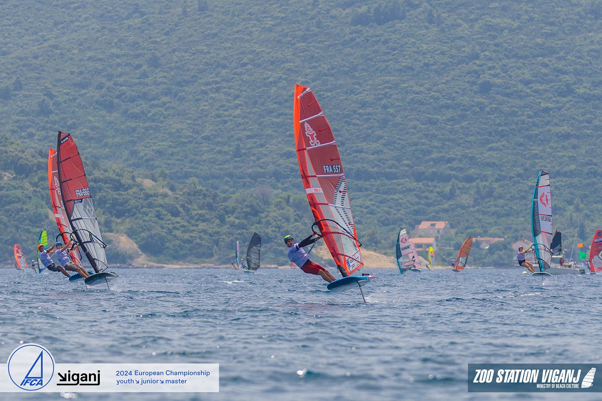 Cela a commencé par le championnat d’Europe en Croatie, en juin 2024. Avant de m’y rendre, je n’avais pas trop de repères. Je ne savais pas trop où je me situais par rapport aux windsurfeurs des autres pays. Dès les premiers jours de compétition, j’ai réussi à naviguer simplement, comme je savais le faire. Cela a vraiment été une belle semaine. Je ne pensais pas forcément y aller pour la gagne, mais quand j’ai vu que j’étais bien parti, j’ai poussé un gros « ouf » de soulagement. Il n’y a pas tant d’évènements slalom foil chez les jeunes dans une saison, j’étais donc content de gagner le premier.