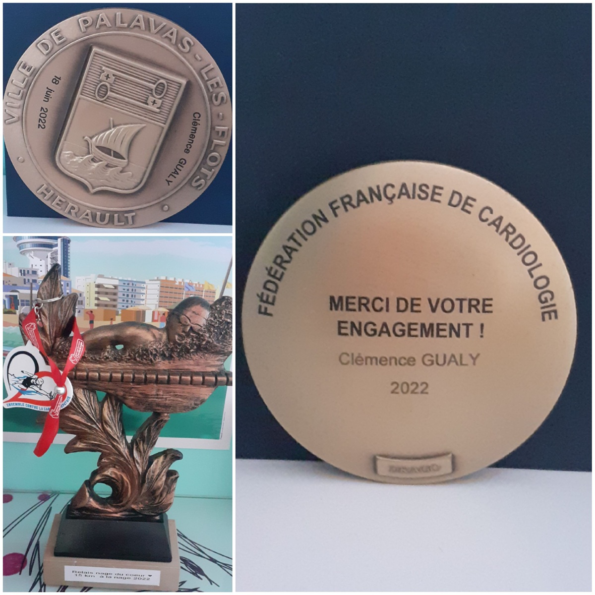 J’en ai profité avec Sport Hérault pour faire un discours de remerciements. J’ai également reçu une médaille de la part du Pr Alain Furber, lors des journées Européennes de la Société Française de Cardiologie afin de saluer mon engagement. On m’a aussi remis un trophée relais du cœur 15 km à la nage 2022.